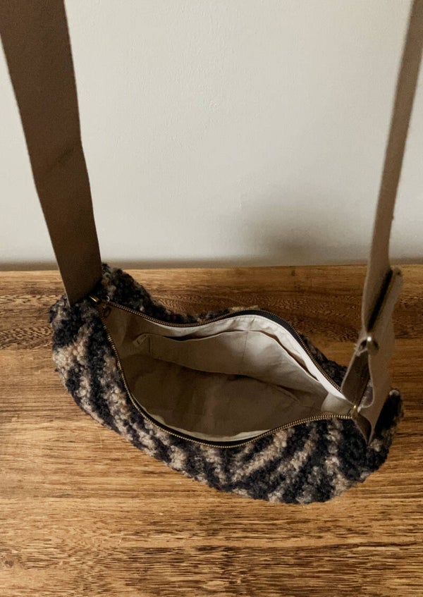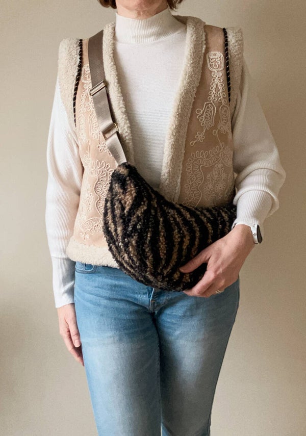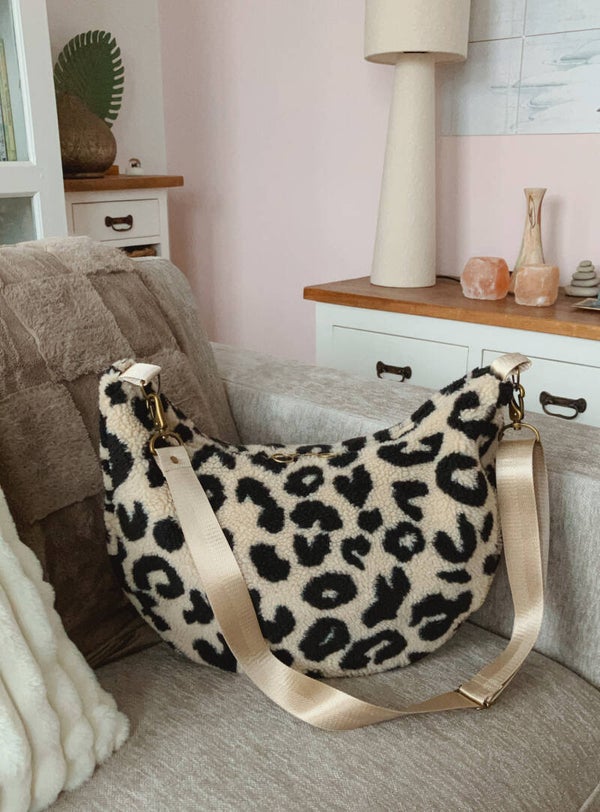 Voeg een vleugje warmte en stijl toe aan je outfit met deze modieuze teddy bananentas in dierenprint – jouw nieuwe favoriete accessoire!