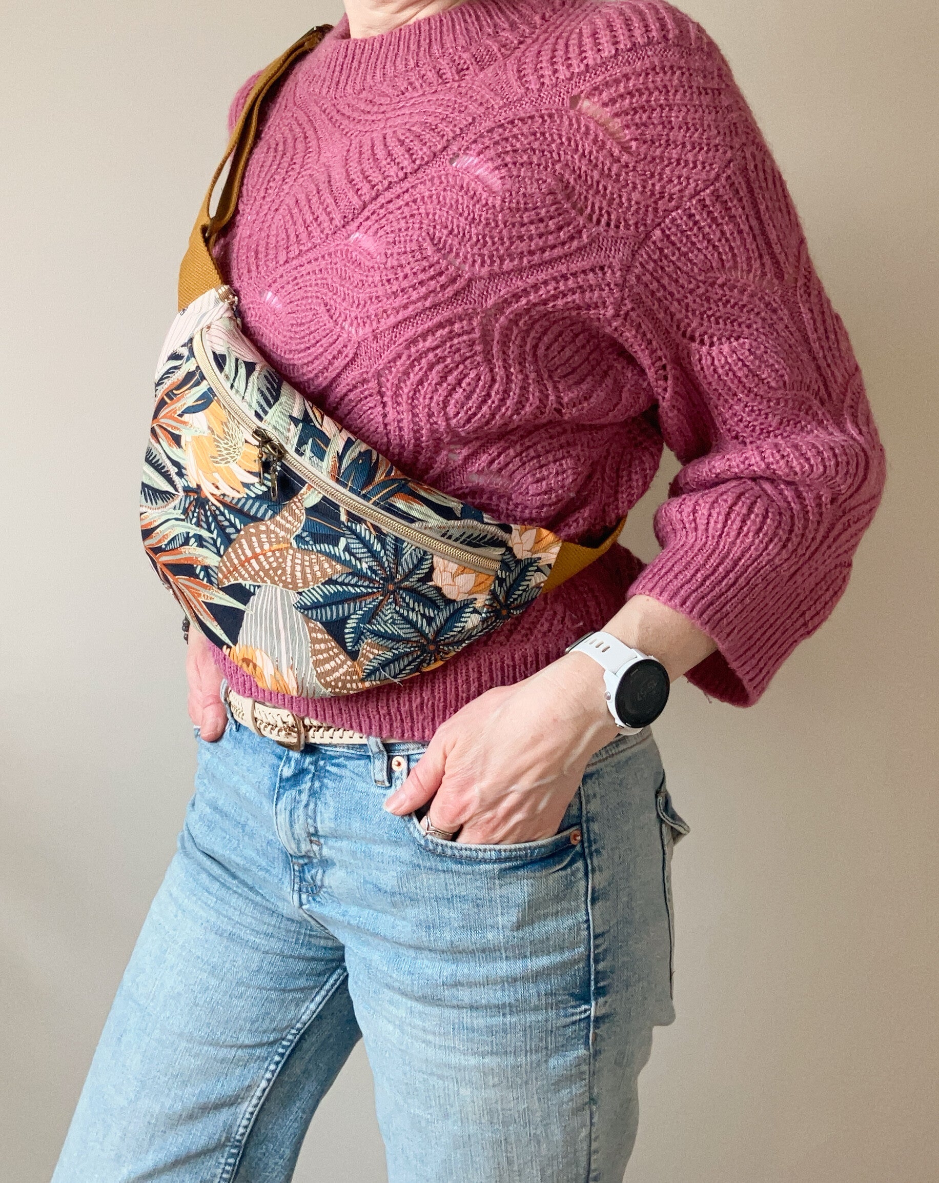 Een speelse en opvallende uitvoering met een botanische print in warme tinten en frisse groenkleuren. Gevoerd met een gestreepte katoenen stof in sage groen/ecru. De combinatie met de mosterdgele band geeft deze heuptas een trendy, zomerse uitstraling. Perfect om je outfit net dat beetje extra kleur en karakter te geven.